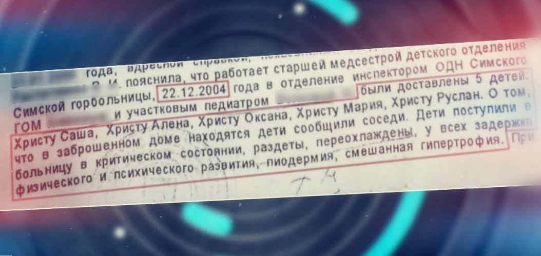 18 лет назад в одну из больниц Челябинской области попали пятеро маленьких детей. Их нашли голодными, замерзшими и полураздетыми в пустом полуразрушенном доме. Предполагаемых родителей, Мальвины Христу и ее мужа, в доме не было. Не нашлось и документов, которые подтвердили бы возраст детей или их родство.