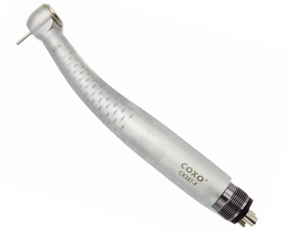 Стоматологические наконечники – устройства, предназначенные для приведения во вращательное движение стоматологических инструментов, боров, эндодонтических файлов и других. Стоматологические наконечники подразделяются на следующие типы: - Турбинные наконечники. - Угловые наконечники. - Прямые наконечники. Турбинные наконечники используют энергию сжатого воздуха, который вращает турбину турбинного наконечника. Угловые и прямые наконечники могут подключаться к электрическим или воздушным микромоторам. Турбинные наконечники описываются следующими характеристиками: - Скорость вращения. - Крутящий момент. - Тип головки. - Фиксация бора. - Тип бора. - Подача воды для охлаждения. - Освещение. - Тип соединения к стоматологической установке. - Уровень шума. - Материал корпуса. - Подшипники. Скорость вращения турбинных наконечников от 250000 до 400000 об/мин. Недостатком турбинных наконечником является то, что крутящий момент может уменьшаться при увеличении сопротивления. Фиксация бора может бы
