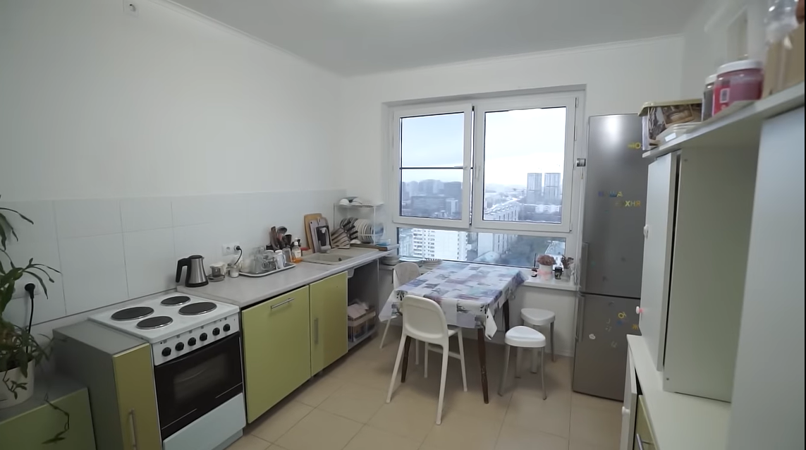 Это была обычная переделка, коих в Квартирном вопросе — уже под тысячу. Квартиру в новостройке хозяева получили по реновации. Кухня в два раза больше, чем в старой. Выглядела она, конечно, странно, верхние шкафчики внизу, а из остальной части гарнитура соорудили какое-то подобие шкафа Видно, что организовано все странно, куча вещей осталась вне зон хранения. Концепция переделки — кафе кондитерская в красивых леденцовых тонах. И надо сказать, она получилась. Красивая колористика, Дизайнер Лилия Асфандиярова постаралась, привнесла несколько интересных идей. Одну из них я взяла себе на заметку — это использование полиуретановых молдингов, выкрашенных в разные цвета в качестве отделки стен. Кроме того, очень грамотно был применен эффект, когда цвет стен сливается со цветом потолка. Так мы не ощущаем стыка и не понимаем, какова высота помещения. А она небольшая. И этот прием скрывает этот недостаток. Все остальное оснащение, как обычно в Квартирном вопросе: духовка, стеклокерамическая вар