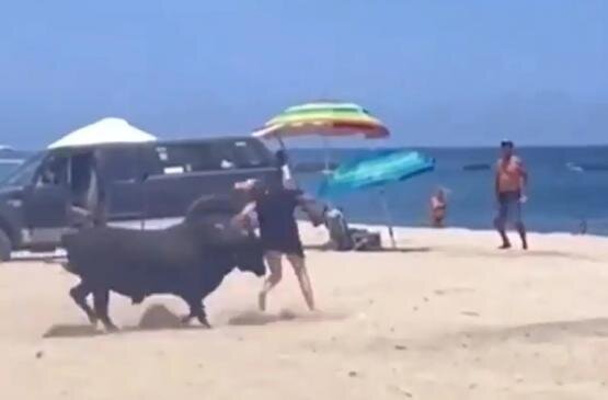 В Мексике бродивший по пляжу курортного городка Кабо бык атаковал туристку. Происшествие попало на видео, опубликованное The New York Post.