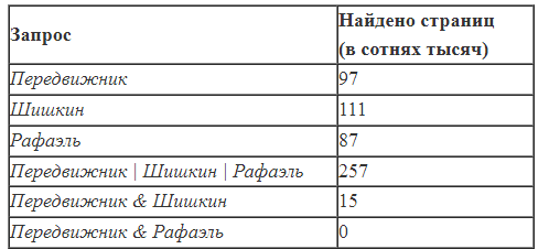 Передвижник + Шишкин + Рафаэль - Передвижник И Шишкин - Шишкин И Рафаэль = Передвижник ИЛИ Шишкин ИЛИ Рафаэль