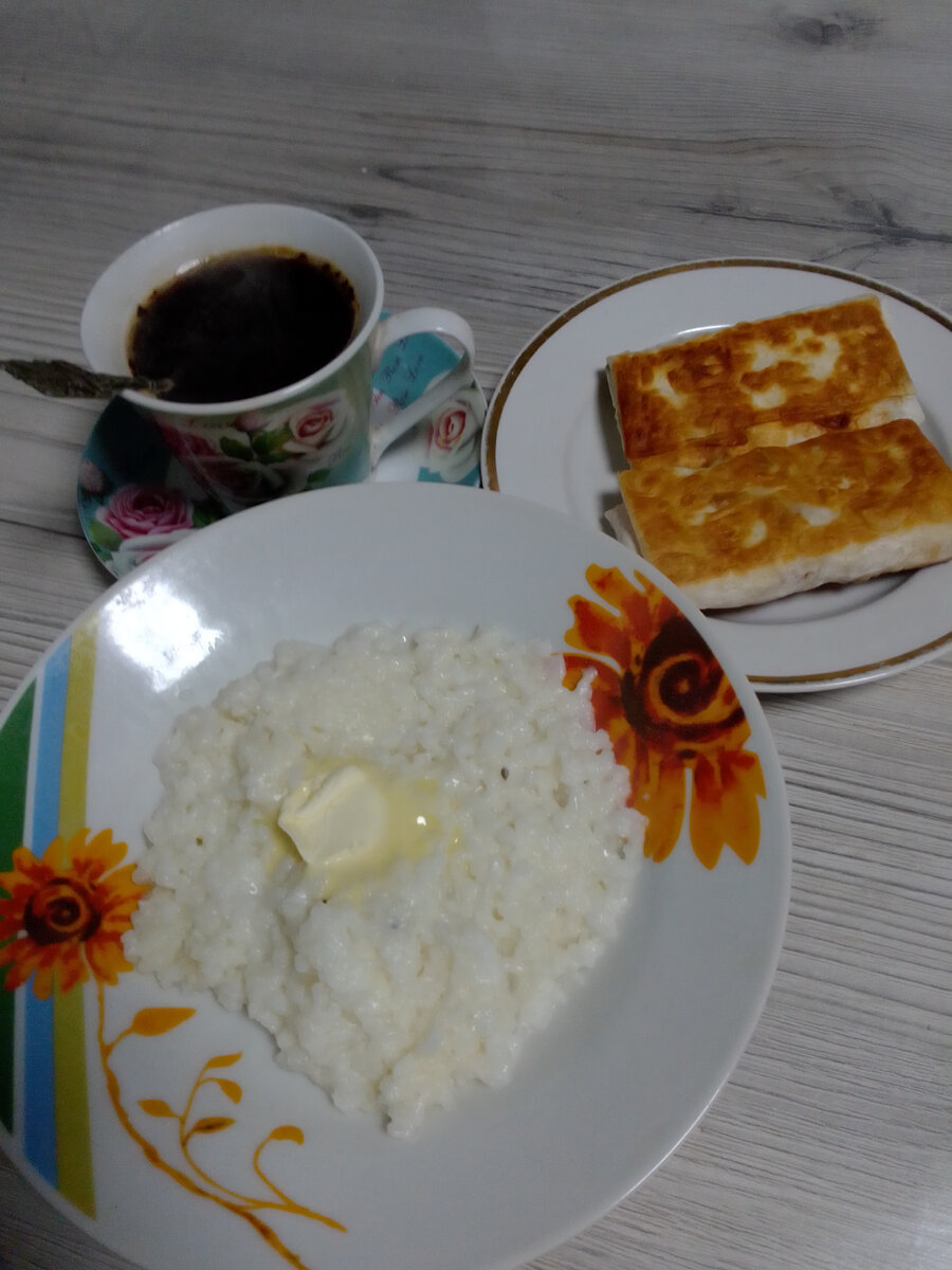 Добрый день, дорогие подписчики и гости моего канала. С вами Надежда, и я приглашаю вас на мою кухню, где покажу вам наше бюджетное и вкусное меню на день. Утро. Вот и закончилось у нас тепло. На улице пасмурно, ночью шел дождь, асфальт сырой, температура + 10, днем обещают + 14 – 17 градусов, вчера было + 25. На завтрак сегодня у меня рисовая молочная каша со сливочным маслом. Варила вчера вечером, утром разогрела в микроволновке, а еще конвертики из лаваша с творогом и изюмом, также делала вчера вечером, утром обжарила на сковороде на смеси сливочного и растительного масла. Ела их с черным растворимым кофе. Завтрак был сытный и бюджетный. У меня разрядился кнопочный телефон, с которым я хожу на работу, он небольшой и хорошо помещается в любом кармане, пришлось брать смартфон. По пути на работу сделала несколько фото, светит солнце прямо в глаза, не вижу, что и снимаю. Это наша школа, она небольшая: всего 1 этаж, в ней же находится администрация и медпункт, так учеников мало, потому