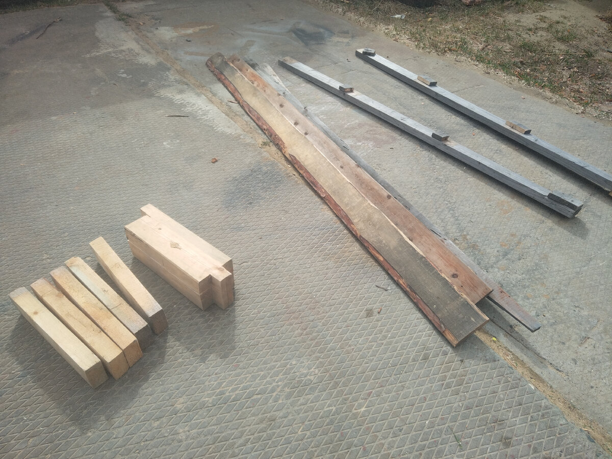 В прошлом году решил порадовать супругу, да и друзей подарками, а именно, изготовить для них лавочки. В качестве материалов были взяты, как обычно, ... палки... не самые лучшие. Остатки бруса от стройки, разобранные ящики и пр хлам. Из бруса напилил досок, которые отторцевал сначала под 15 град - все детали, кроме задней ножки (на ней один из концов запилен под 30 град) - позже я приведу фото деталей с размерами и углами - читаем дальше)). На верстаке, попробовал выложить сидение, некоторые детальки пришлось укоротить. Кромки отфуговал на фрезерном столе, чтобы контактные поверхности были ровными, а стыки четкими Пласти решил не фуговать и не совать в рейсмус (ножи жалко - вторичная доска всегда богата гвоздями, шурупами и просто песком). Я просто шлифанул их 40-й наждачкой. Для примера несколько до половины отшлифованных деталей. Так сказать До и ПОСЛЕ. Кстати, шлифовка болгаркой может быть без пыли с помощью вот такого приспособления В результате у меня получилось три группы дета