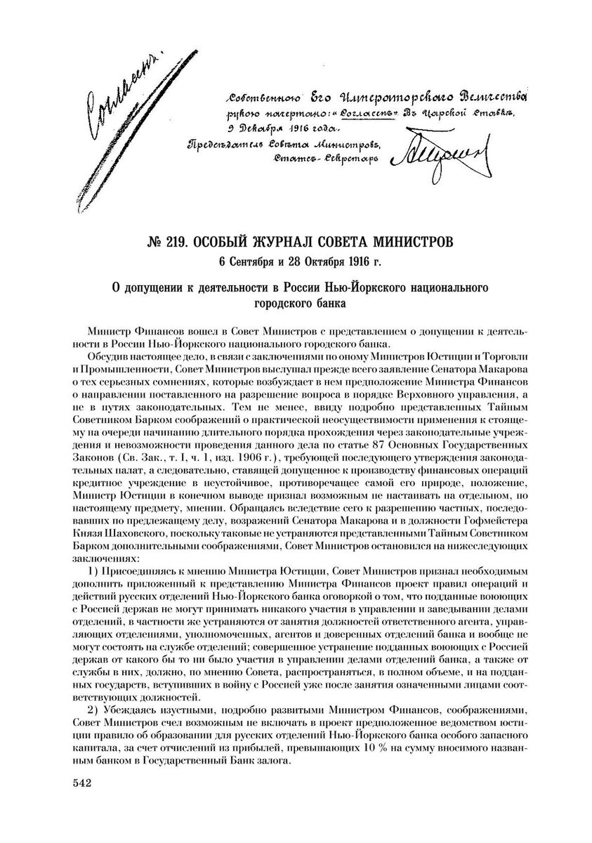 9 декабря 1916 года государь Николай Александрович вывел слово «Согласен» на документах о разрешении деятельности в Российской империи «Нью-йоркского национального городского банка». Первый американский банк получил разрешение на работу в России. Но, как оказалось в дальнейшем, это же надо было так неудачно открыться! Сначала, конечно, все было хорошо! Банк снял для работы дом на Дворцовой набережной, 8 в бывшем дворце молдавского господаря Дмитрия Кантемира, недалеко от Зимнего дворца. С января 1917 года банк начал работать, о чем сообщило читателям «Новое время»: «…Нью-йоркский национальный городской банк, первый американский банк, которому дано разрешение на открытие отделения в России. 2-го января 1917 года Нью-йоркский национальный городской банк открыл свое отделение в Петрограде, в здании старого турецкого посольства на Дворцовой набережной в доме № 8… Открывая в настоящее время свое отделение в России, банк задался целью финансировать и облегчать торговые сношения между Россией