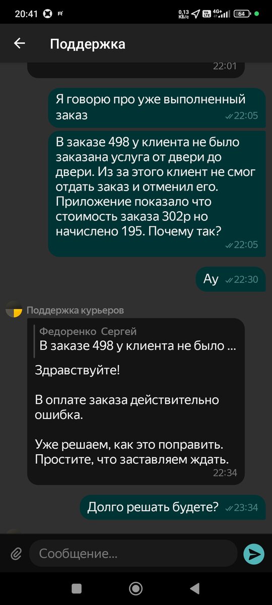 Яндекс.Вор опять обкрадывает водителей. На этот раз они в наглую воруют часть стоимости заказа и не начисляют её. И не получите вы её никогда. Потому что Яндекс.Вор не хочет расставаться с вашими кровными. Спустя сутки вот что ответила поддержка: Естественно никакой компенсации не было. Ещё спустя сутки: И опять враньё. И так до бесконечности можно с ними переписку вести. Как всегда отправлена жалоба в роспотребнадзор и прокуратуру.