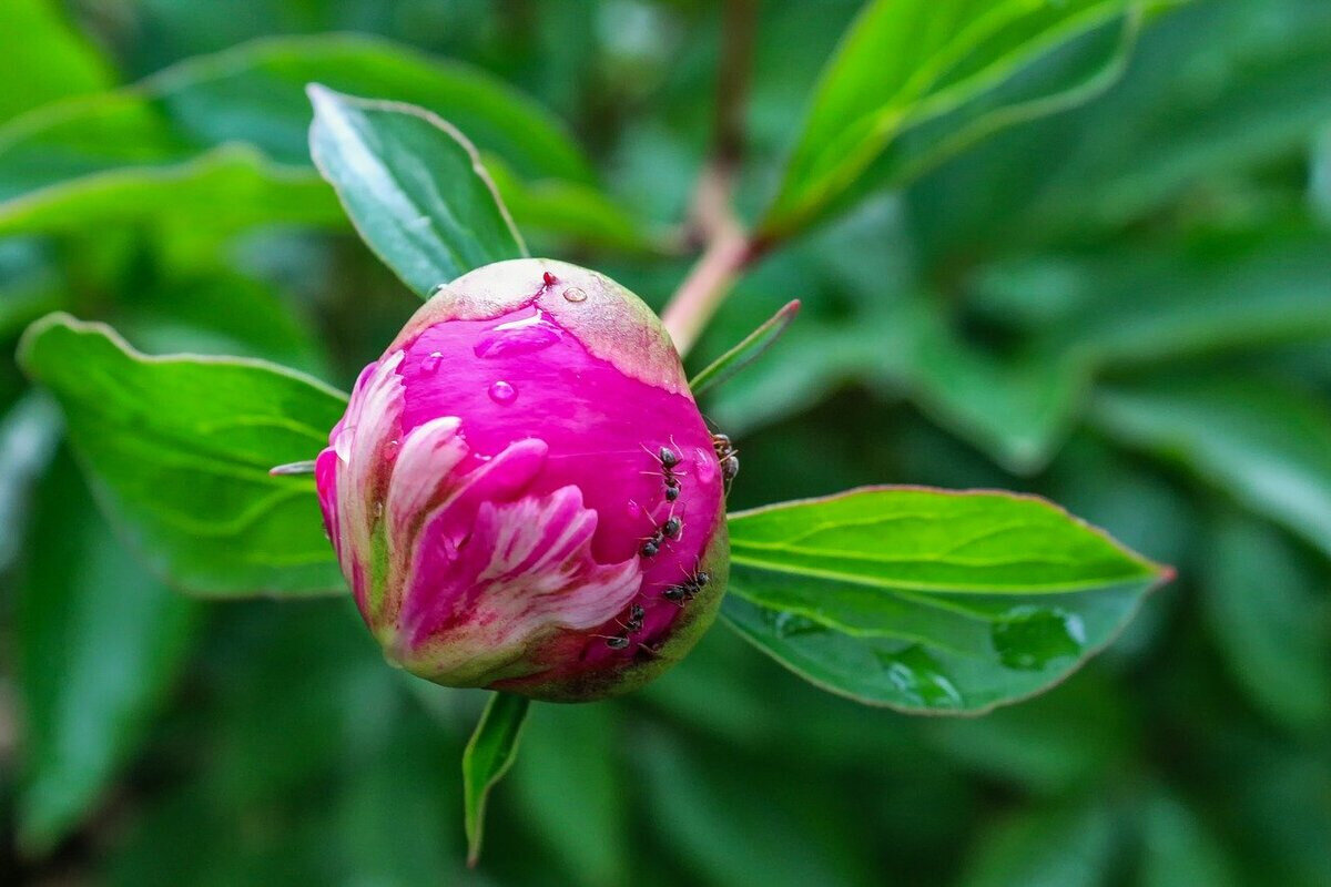 Цветение пионов привлекает не только дачников, но и многих вредителей. Большую проблему для садоводов представляют муравьи, ведь они питаются соком листьев, а также повреждают бутоны. После появления муравьёв на цветочных кустах можно будет обнаружить и тлю, поэтому необходимо делать всё для защиты растений.