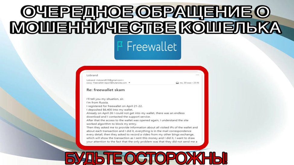 В рамках нашей постоянной работы по защите пользователей криптовалют от мошенничества мы столкнулись с еще одним тревожным случаем, связанным с печально известным криптовалютным кошельком Freewallet. Недавно к нам обратился пользователь из России с тревожной историей, которая является примером обманной тактики, применяемой Freewallet.
