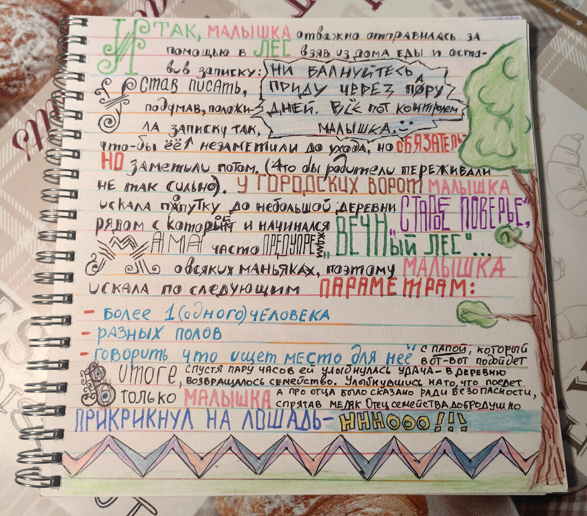 Итак, Малышка отважно отправилась за помощью в лес, взяв из дома еды и оставила записку: "НИ ВАЛНУЙТЕСЬ ПРИДУ ЧЕРЕЗ ПОРУ ДНЕЙ СРОЧНЫЕ ДЕЛА. малышка 🙂" Устав писать, и подумав не забыла ли она добавать что то еще архиважное, положила записку так, что бы ее не заметили до ухода, но ОБЯЗАТЕЛЬНО заметили потом вечером (то есть под кастрюлей с супом) (и что бы родители переживали не так сильно) У городских ворот Малышка искала попутку до деревни "Старое Поверье" рядом с которой и начинался Вечный Лес. Матушка часто предупреждала о всяких там маньяках и разных нехороших личностях, поэтому Малышка искала попутку по следующим параметрам: - более 1 человека - разных полов - говорить что место для нее с папой, который вот вот подойдет. Спустя пару часов ей улыбнулась удача - в деревню возвращалось семейство! 😏 Улыбнувшись в бороду на то что поедет только Малышка, а про папу ради безопасности, отец семейства спрятал медяк и добродушно прикрикнул на лошадь -ннннооо!