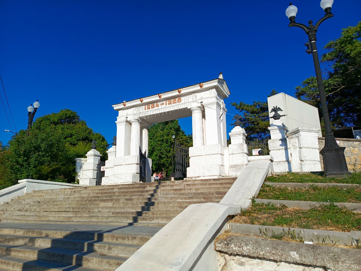 Сегодня познакомимся с памятником природы "Ушакова балка". Если хотите посмотреть на много зелени, высокие деревья, то приглашаю походить со мной. Ну что, пойдем прогуляемся? Выходим на известной уже моим читателям остановке "Малахов курган": Переходим дорогу и идем направо и прямо: Встречаем указатель: Доходим до кафе, которое я вам уже когда-то показывала ( когдамы гуляли по улице Героев Севастополя): Поворачиваем налево: Слева на дереве видно что-то розовое, а это вот такие пушистики: Доходим до указателя: И перед этим магазином поворачиваем направо: Вот сюда: Проходим еще немного и видим информацию о памятнике: Чуть не забыла признаться😂 здесь я раньше никогда не была, впервые хожу вместе с вами. Дальше идет вот такая дорога, по ней и пойдем: Слева, на фото выше, видны ступеньки: Справа встречаем еще одну информационную табличку: И ступеньки: Раз есть дорожка, то решила я пойти по ней: А дальше идут ступеньки: Много ступенек: По краям лестницы, как я поняла, когда-то были