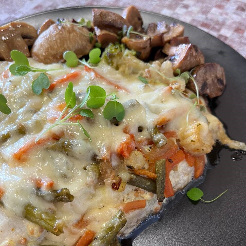 Рыбный ужин: филе пангасиуса с овощами и шампиньонами в духовке