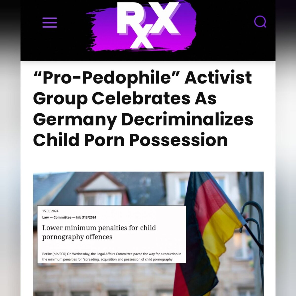Группы активистов, выступающих за педофилию, празднуют новость о том, что Германия согласилась с решением и декриминализировала хранение детской порнографии. Этот шаг приветствуется группами активистов “за права педофилов”, которые также призвали снизить брачный возраст до 12 лет. Активистская группа “Крумме-13”, выступающая за педофилию, также заявила, что будет добиваться отмены приговоров педофилам, осужденным по старому закону, утверждая, что многие педофилы являются жертвами детей, которые стремятся вступить в отношения с "педосексуалами". Парламент Германии (Бундестаг) получил необходимые голоса, чтобы исключить ключевой раздел Уголовного кодекса, который квалифицирует хранение материалов о сексуальном насилии над детьми как уголовное преступление. Минимальные сроки наказания за хранение детской порнографии теперь будут сокращены, а само преступление будет квалифицировано как мелкое правонарушение, поскольку, согласно новому законодательству, многие преступники просто “любопытны” или испытывают “жажду приключений”. Христианско-демократический союз (ХДС) и Христианско-социальный союз Баварии (ХСС) выступили с заявлением о несогласии. “Распространение, хранение и приобретение детской порнографии, в принципе, должны по-прежнему квалифицироваться как преступления”.