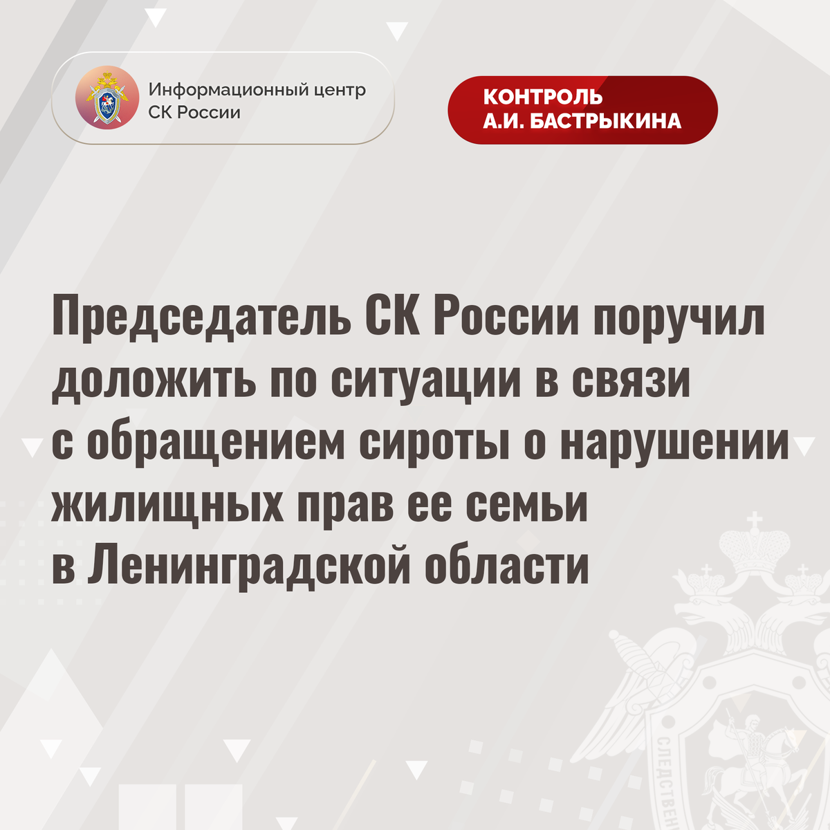 Председатель СК России поручил доложить по ситуации в связи с обращением сироты о нарушении жилищных прав ее семьи в Ленинградской области