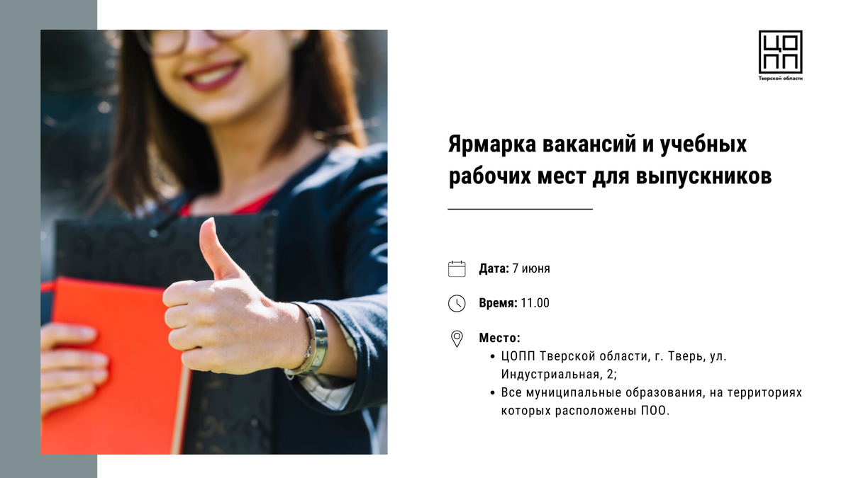 В Тверской области состоится специализированная ярмарка вакансий и учебных рабочих мест для выпускников, находящихся под риском нетрудоустройства.
