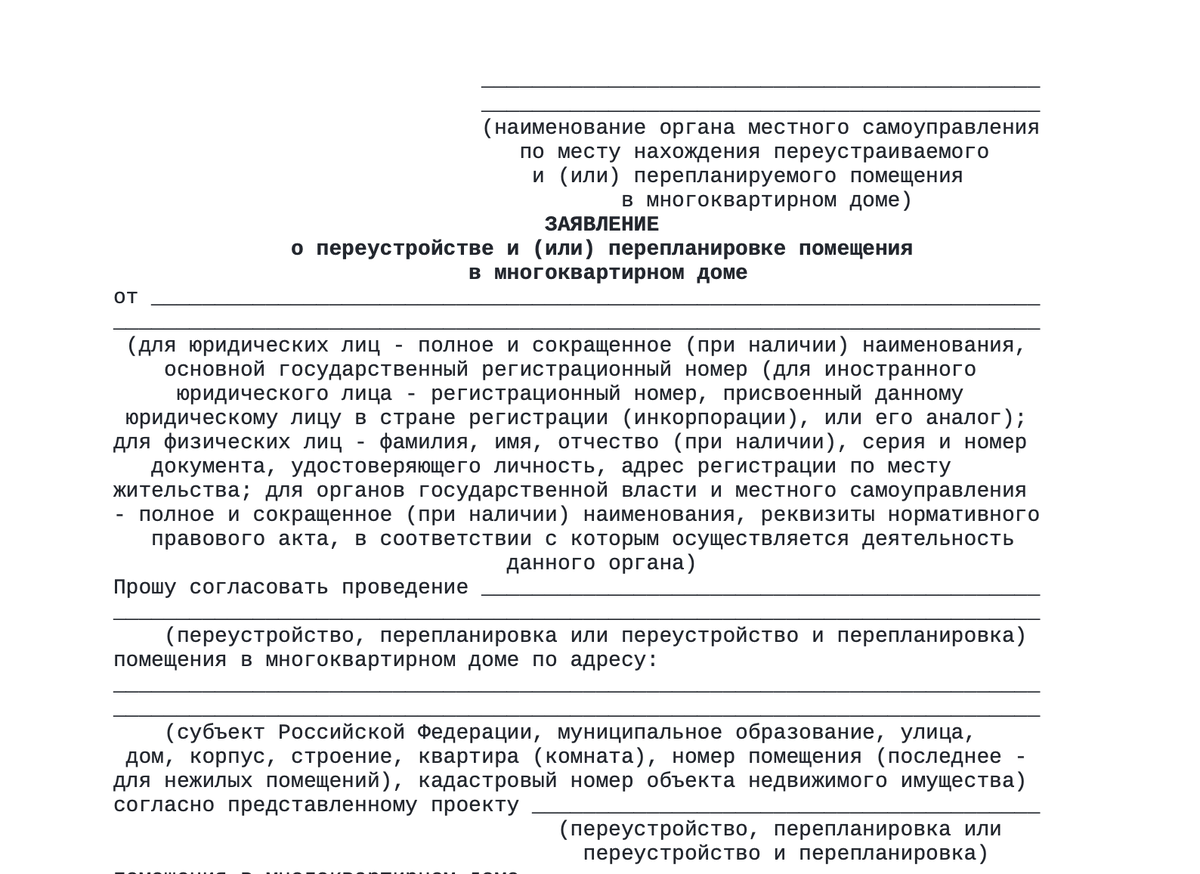 Утверждена новая форма заявления о переустройстве и перепланировке помещений в многоквартирных домах