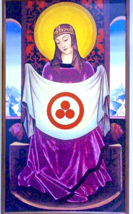 Удивительный, необычный Знак трёх солнц присутствует во многих орнаментах неолита. Николай Рерих сообщает в статье "Знамя Мира": "Знак Триединости оказался раскинутым по всему миру"; "Чинтамани - древнейшее представление Индии о счастье мира - содержит в себе этот знак! В Храме Неба в Китае вы найдете то же изображение. Тибетские "Три Сокровища" говорят о том же. Он же на старинной иконе Св. Николая в Баре. Он же на изображениях Св. Троицы"… И на буддийских знаменах есть этот знак".