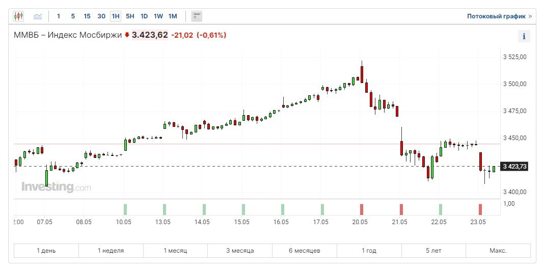 Российский рынок падает, несмотря на скорые выплаты дивидендов. Что случилось?