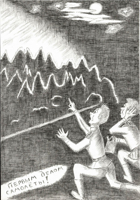 Выйдя из посёлка глянули вперёд на лесопосадку за которой был расположен лагерь и аэродром и обмерли…. Отнялось всё! Руки, ноги, даже речь…хотя кричать хотелось- над лесопосадкой, там где был лагерь и аэродром, озаряя чуть ли не полнеба стояло зарево пожарища!
