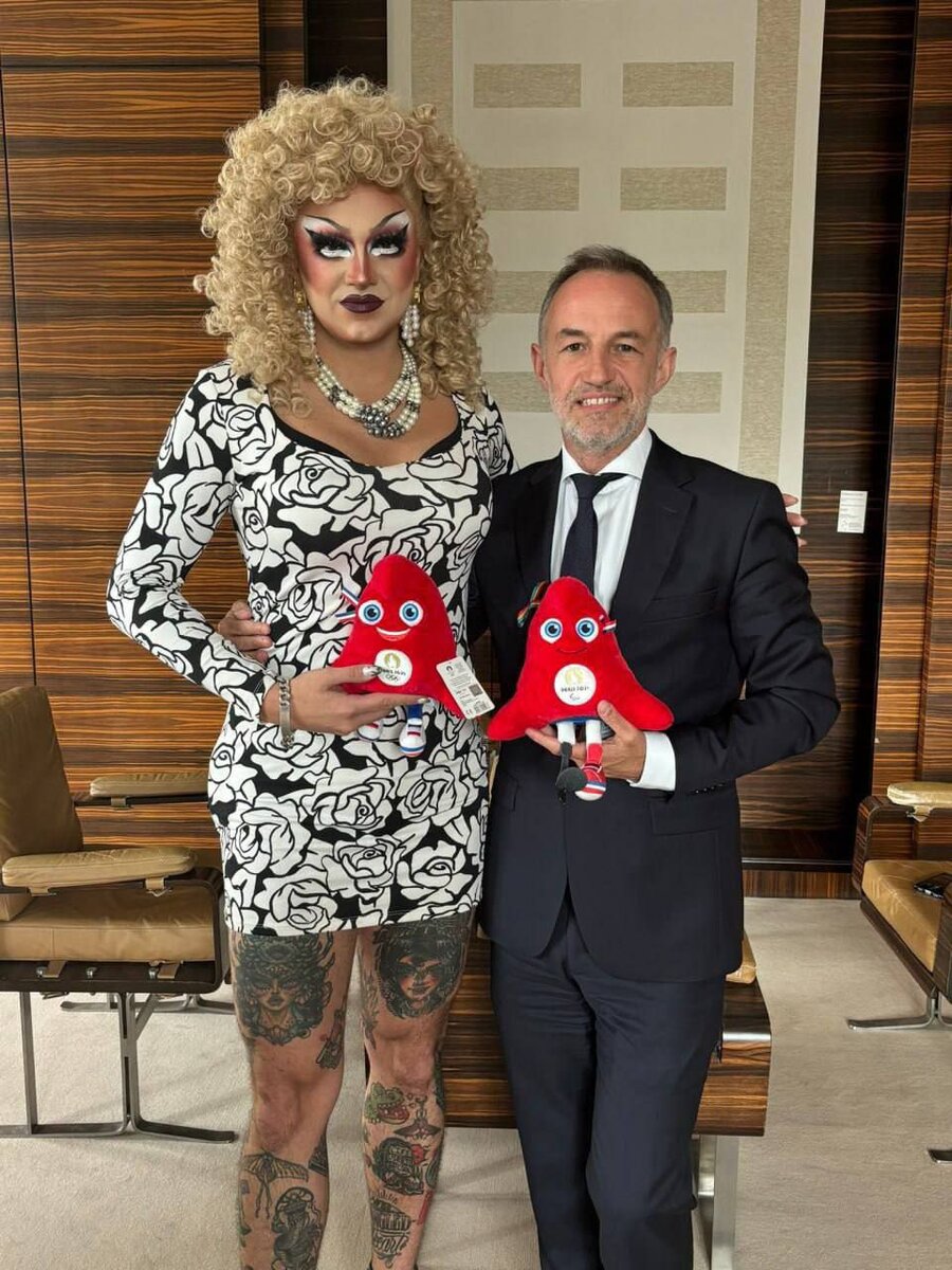 Первый помощник мэра Парижа Эммануэль Грегуар опубликовал в фото с трансвеститом, который пронесет факел на торжественном открытии игр этого года.