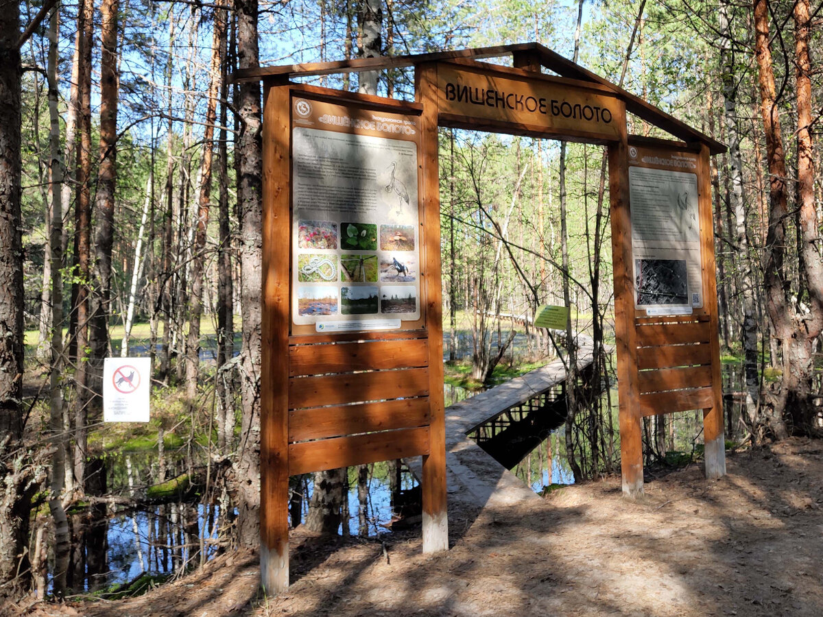 Есть у меня странное пристрастие – очень люблю ходить по лесам и болотам по деревянным настилам. Впервые сделала это в Финляндии, где в парке Торонсуо тропа по болотам идет 7 (!) км. Также мы гуляли по болотам Эстонии и, конечно, по нашим тоже. У нас, правда, масштабы несколько скоромнее, но все равно есть, где погулять. И вот в Керженском заповеднике нам тоже удалось насладиться деревянной тропой. Их в заповеднике несколько, но больше всего мне понравилась тропа по Вишенскому болоту. Она не длинная, 750 м, но зато очень красивая. Но самая красота менее доступна, чем другие тропы, до нее еще надо дойти, находится она в паре километров от Экоцентра. Зато путь туда лежит мимо магазина, в котором есть – Ура! – мороженое) Путь дальше по бывшей узкоколейке и песчаным дорожкам обозначен такими столбиками. Сейчас в мае самый первый участок, как и сказано в путеводителе, полностью залит водой. И мало того, на воде радужная пленка, как от бензина. Но понятно, что это не бензин - не откуда ем