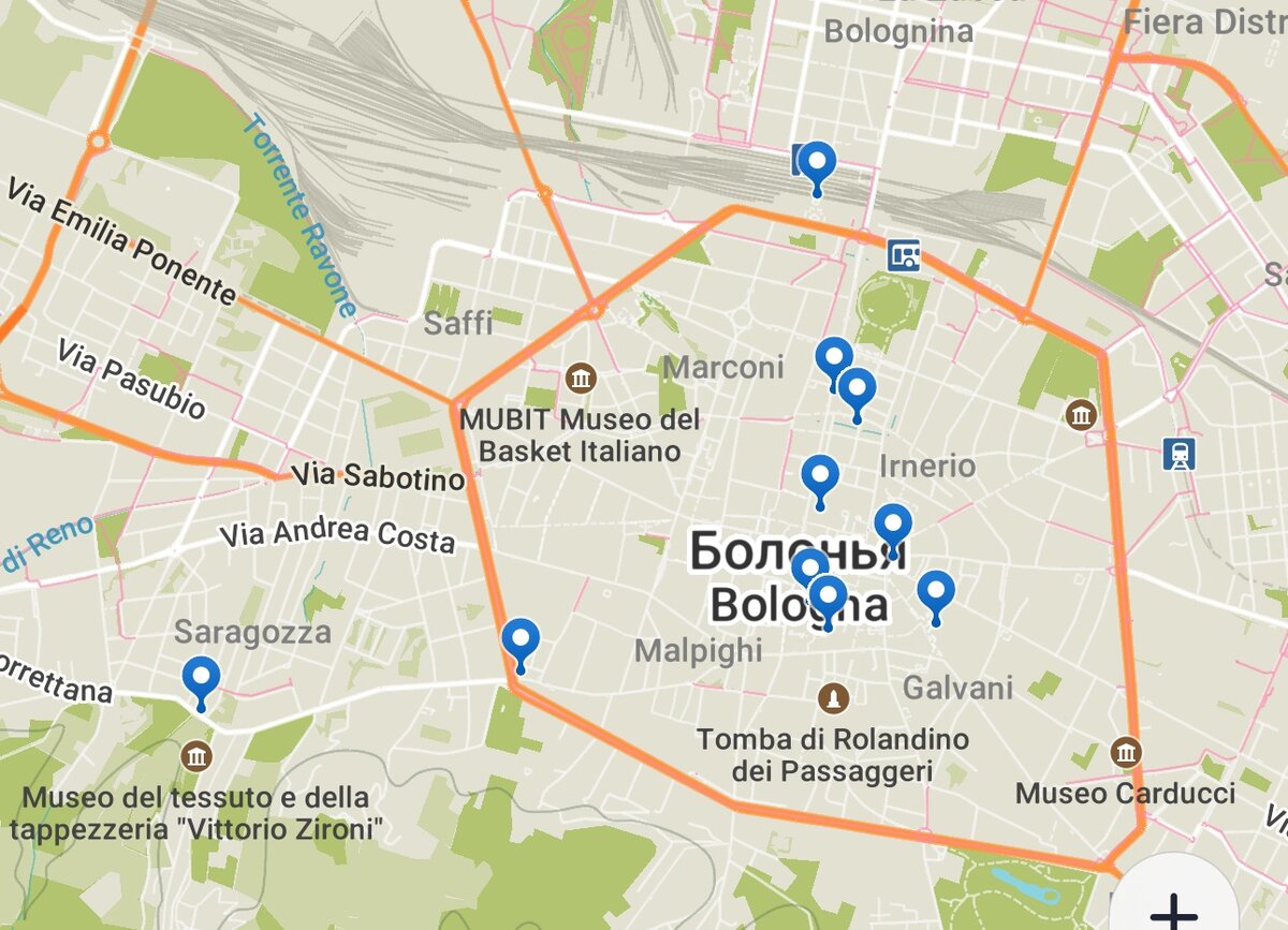 «Ученая, красная, толстая» (la Dotta, la Rossa, la Grassa) — так называют Болонью. Месяц назад я побывала в Болонье один раз. Наша поездка из Рима была запланирована как однодневная, и даже запланированное успели не всё. Но в Болонью я влюбилась, и обязательно вернусь погулять еще не спеша, обойти то, что не увидели. Будем считать эту поездку "разведкой", а основной поездкой - следующую :) Но список, что посмотреть за один день, дам обязательно. Возможно, вы успеете всё - или растянете этот список не спеша на два-три дня - дело ваше. Моё дело - дать намётки и рассказать-показать, что есть интересного. Болонья - потрясающая! Известная она еще и 36 километрами крытых галерей - идёшь, и палящее солнце тебя не мучает. И комфортно, и красиво! Итак, что увидеть в Болонье обязательно: 1. Святилище Мадонна-ди-Сан-Люка (Santuario della Madonna di San Luca) располагается на Караульном холме - это не в центре города. Тут икона с ликом Богородицы, которую писал Святой Лука. Её нашли в 9 веке, а