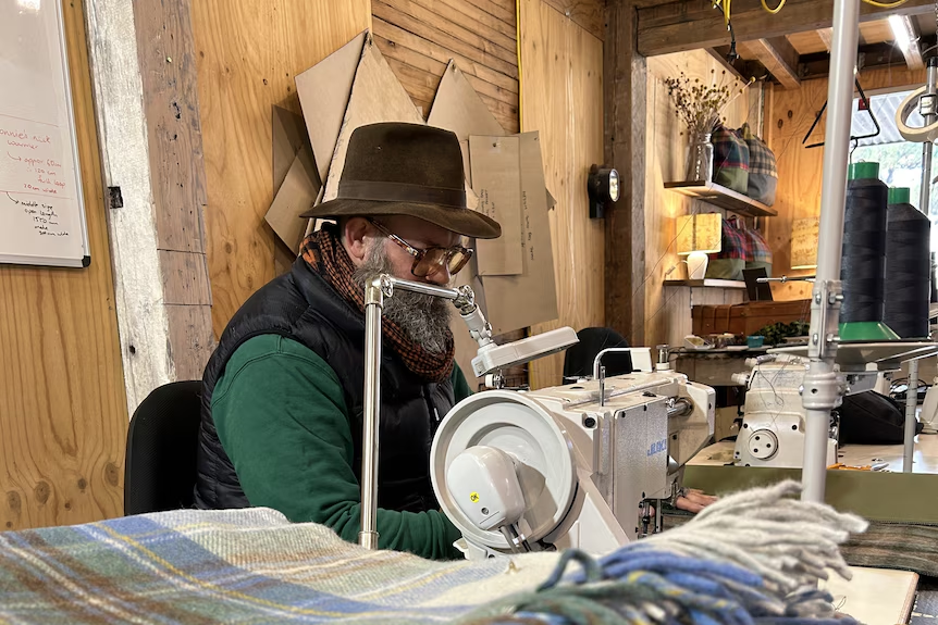 Для Дэвида Пендлтона нет лучшего звука, чем жужжание швейной машинки.За последние пять лет он изготовил тысячи одеял, ковриков для пикника и подушек для домашних животных из переработанной шерсти в своей маленькой мастерской в Якандане, на северо-востоке штата Виктория. Мистер Пендлтон и жена Джейн теперь продают свои изделия из переработанной шерсти на фермерских рынках - вместе с домашними продуктами и оливковым маслом. Мистер Пендлтон говорит, что пришел в мир текстиля после того, как оставил корпоративную карьеру. «Я работал над крупным проектом для международной благотворительной организации, целью которого было свести к минимуму сексуальное насилие над женщинами в цехах Юго-Восточной Азии», — говорит он. «Ткани совершенно не связаны с тем, над чем я работал, но когда я столкнулся с переработанным текстилем, мне просто захотелось узнать больше». Исполнительный директор Michell Wool Дэвид Мичелл говорит, что текстиль перерабатывается уже много лет. «В Европе это происходило на про
