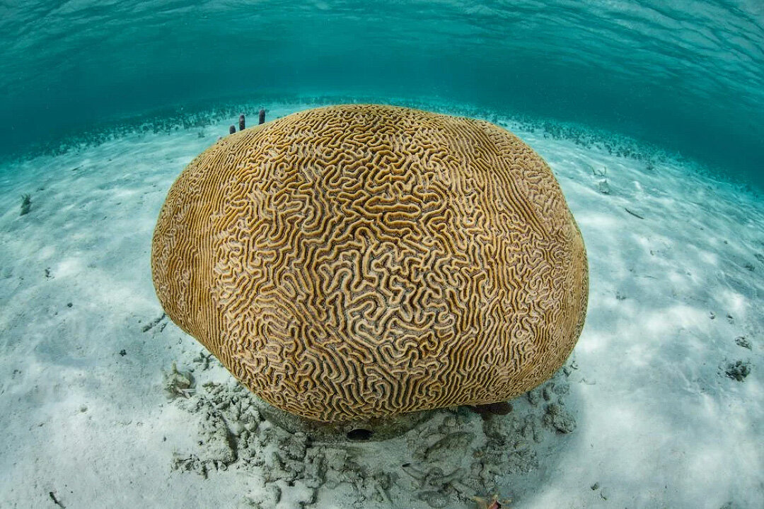 Привет, мои дорогие любители необычной земной фауны. Когда я впервые увидел это во время одного из мои погружений, я подумал: "Что за чёрт? Такое впечатление, что какой-то рассеянный проплывающий мимо кит оставил тут свои мозги". Но, это, конечно шутка. На самом деле, это никакие не мозги, а скелет... Штуковина, которую вы видите на самом деле не существо, а целая колония существ. Это так называемый коралл-мозг, куда входит целый комплекс близкородственных видов в нескольких семейств, не имеющих общего предка (такое родство называется в биологии полифилия). Схожесть внешнего вида таких кораллов связана со схожим образом жизни, и обусловлено конвергентной эволюцией. Но в целом, говоря о кораллах-мозгах обычно имеют в виду обширное семейство Mussidae. Если рассматривать коралл вблизи, то это уже напоминает не мозг, а лабиринт, наподобие тех, которых в моём детстве рисовали в журнале "Весёлые картинки", когда нужно было провести мышонка к кусочку сыра. Эти кораллы являются дальними родств