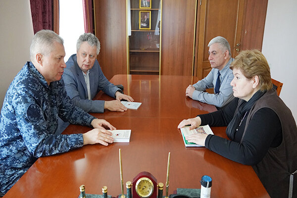 В УФСИН России по Республике Дагестан прошла рабочая встреча главы ведомства генерал-майора внутренней службы Андрея Полякова с членом Общественного совета при ФСИН России Шамилем Кашафом, на которой обсудили актуальные вопросы получения высшего и среднего профессионального образования осужденными, отбывающими наказание в учреждениях уголовно-исполнительной системы региона. Отдельное внимание уделялось новым образовательным возможностям, которые открываются для них в соответствии с Федеральным законом от 06.02.2023 № 10-ФЗ «О пробации в Российской Федерации». В мероприятии также приняли участие председатель Комиссии Общественной палаты Республики Дагестан по вопросам образования, науки и развития культуры, доктор педагогических наук, профессор Бика Алиева, заместитель начальника УФСИН России по Республике Дагестан полковник внутренней службы Абдулхак Абдулхаков, заместитель начальника УФСИН России по Республике Дагестан полковник внутренней службы Аликади Магомедов, заместитель начальн