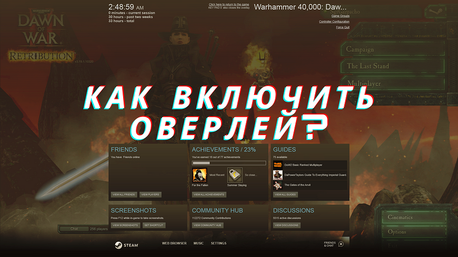 Оверлей в Steam — это очень полезная штука. С ее помощью вы можете быстро найти руководства, которые помогут вам в прохождении игры. А доступ к этому самому гайду будет буквально моментальным — не нужно сворачивать игру и копаться в браузере. С помощью Overlay вы также можете быстро отвечать друзьям на сообщения или видеть, кто заходит в сеть. В этой статье мы расскажем, как открыть оверлей Стим в игре, а также разберем все популярные проблемы, связанные с ним.