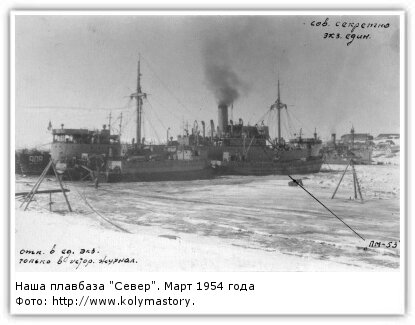 В обеденное время погода стояла отличная и все стояли на баке плавбазы и наблюдали за подвижкой поля пакового льда, вошедшего в бухту Нагаево. Тогда никому из нас и в голову не могло прийти, что льдина с такой массой может ударить по нам. Тревогу сыграли поздно, когда уже лодки стало припирать к пирсу.