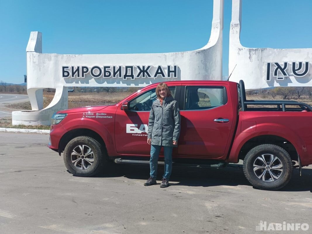 С Натальей Шиповской мы познакомились на въезде в столицу еврейской автономии. Рядом со стелой с надписью Биробиджан стоял огромный красный пикап, а рядом невысокая и хрупкая женщина. Она попросила нас сделать фото. Так завязался разговор.