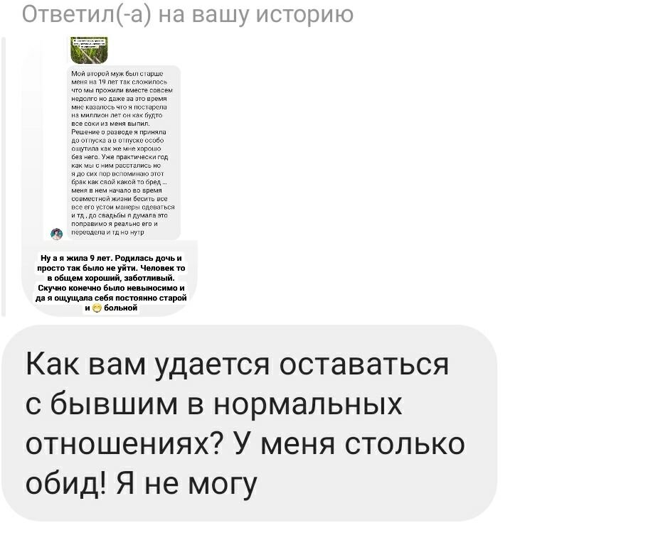 Сильную обиду ощущаете потому что оставили много своей энергии (прям себя) в прошлых отношениях. Отношения закончены. А энергия к вам не вернулась. ▶️ Энергия не вернулась и не вернется, поскольку не проработаны ваши негативы из-за которых отношения вы строили так, как строили: отдавая лишнее, мб и партнера выбрали который вас не ценил и не вкладывался достаточно в ваши отношения. 📌 На сеансе регрессивной терапии - Расцепление с бывшими партнерами, мы с клиентами напрямую работаем с теми негативами человека, которые влияли на то какими эти отношения были. ✔️ А в конце сеанса, проработав все причины - проводим расцепление и человек забирает обратно все свои энергии и из бывшего и из отношений. После этого никаких обид больше не ощущаешь! После расставания важно начать жить своей жизнью, причем полноценно. А не сидеть мыслями, энергиями и эмоциями в прошлом. Опыт - не равно страдания ❗ За то, как вы будете жить после завершения любых отношений в ответе только вы сами! Часто б