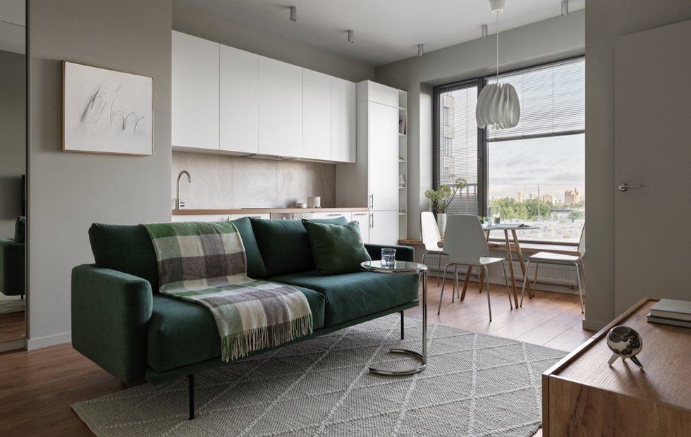 Дизайнер Анастасия Родина оформила этот нейтральный, но нескучный интерьер для сдачу в аренду, но с учетом, что в будущем, возможно, в этой квартире будет жить дочка заказчиков. По планировке стремились сделать вариант, который подойдет большому числу потенциальных арендаторов. Так появилась идея превратить двушку в евротрешку с двумя отдельными комнатами и кухней-гостиной. Таким образом квартира становится более многофункциональной: вторую комнату можно использовать как детскую/кабинет/вторую спальню