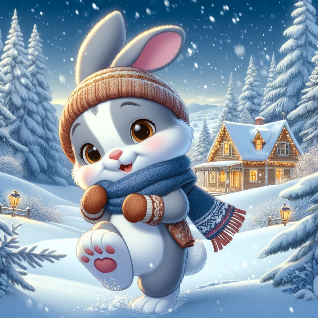 Глава 1: Встреча с Лисой Лапка, маленький зайчик, проснулся в своей норе и увидел, что весь лес был покрыт снегом. Он решил отправиться в увлекательное путешествие сквозь заснеженные деревья и поля. Первой встречей на его пути стала лисичка. Лапка: Привет, Лиса! Я Лапка. Как ты справляешься с этой холодной погодой? Лиса: Здравствуй, Лапка! Я Лиса. Холод не страшен, если знаешь, как прятаться от врагов и находить еду в снегу. И так, Лапка провел несколько дней с Лисой, учась выживать в заснеженном лесу. Он научился прятаться в норах и следить за следами других животных. Глава 2: Встреча с Филином Однажды, когда Лапка шел через лес, он услышал странный звук. Это был филин, сидящий на ветке дерева. Лапка: Привет, Филин! Я Лапка. Что ты делаешь на этой ветке? Филин: Здравствуй, Лапка! Я Филин. Я мудрый птица. Я научу тебя, как ориентироваться по звездам и находить дорогу домой. И так, Лапка провел еще несколько дней с Филином, учась навигации и мудрости. Он научился различать созвездия и