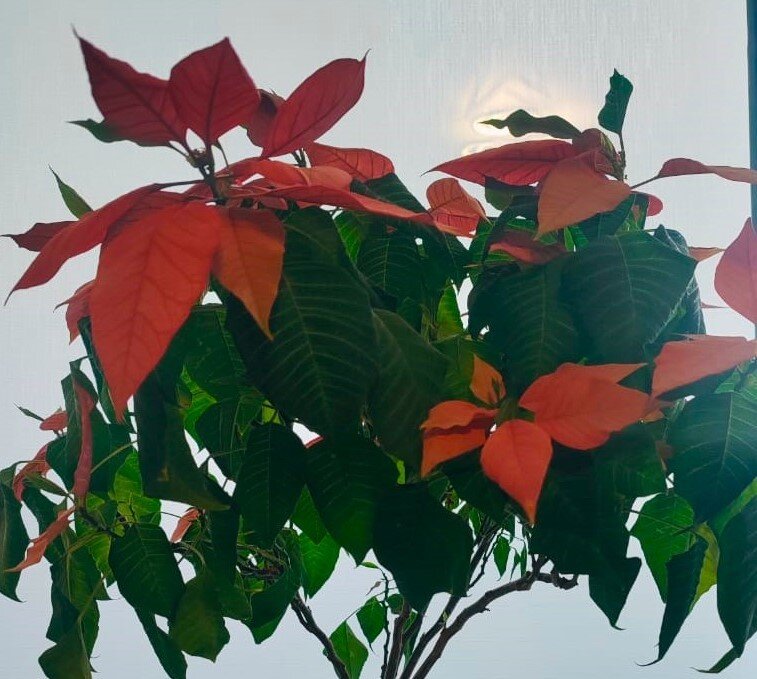 Про пуансеттию писали много. Цветок распространенный, красивый и капризный. Ну, по крайней мере у меня он долго болел, сбрасывал листья, был однотонного зеленого цвета и краснеть не собирался. Я даже сначала не могла понять, что за цветок мне достался. Принес сын. Он тоже где-то его взял. В общем, откуда цветок — непонятно. И названия не знала. Спрашивала у наших семидачников. Мне про цветок рассказали, объяснили что делать, и я его оставила у себя — вот такую приболевшую пуансеттию. Чтобы пересадить, подлечить и отдать обратно сыну. Описание растения Пуансеттия — растение из Центральной Америки. Относится к роду Молочай. В дикой природе вырастает до 4 метров, в домашних условиях — до полуметра. Листья темно-зеленые, до 15 см длиной. Цветочки невзрачные желтоватые. Зато прицветники ярко-красного, насыщенного цвета. За этот цвет ее называют рождественской звездой. И узнают цветок именно по этому названию, а не по имени биолога Пойнсетта. Условия выращивания Любит: Не любит: Посадка, пер