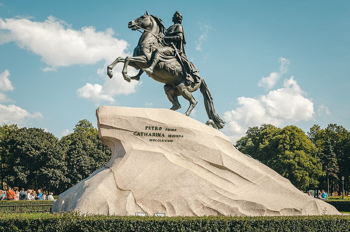Медный всадник — это памятник, расположенный на Сенатской площади в Санкт-Петербурге. Он был установлен в 1782 году по приказу Екатерины II и посвящён её предшественнику — Петру I. Скульптор Этьен Фальконе воплотил в монументе образ великого реформатора и основателя Санкт-Петербурга. Пётр I восседает на вздыбленном коне, который олицетворяет Россию, вставшую на путь преобразований. Голова императора повёрнута к Неве, а рука указывает в сторону Швеции, что символизирует готовность к войне и защите государственных интересов.