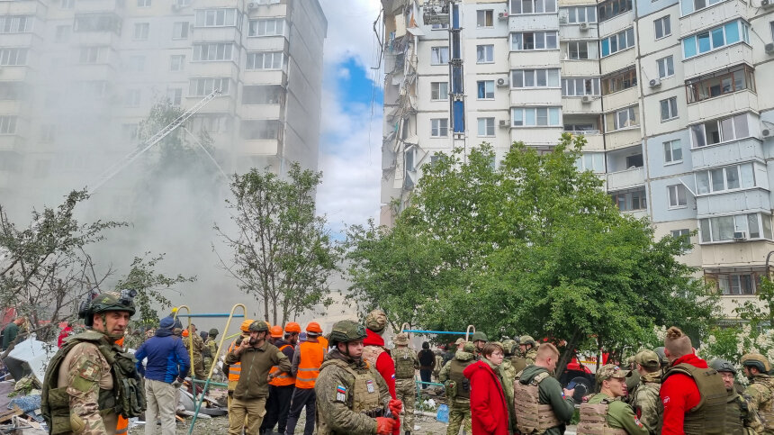 Рядом с обрушившимся домом в Белгороде после атаки ВСУ находится школа