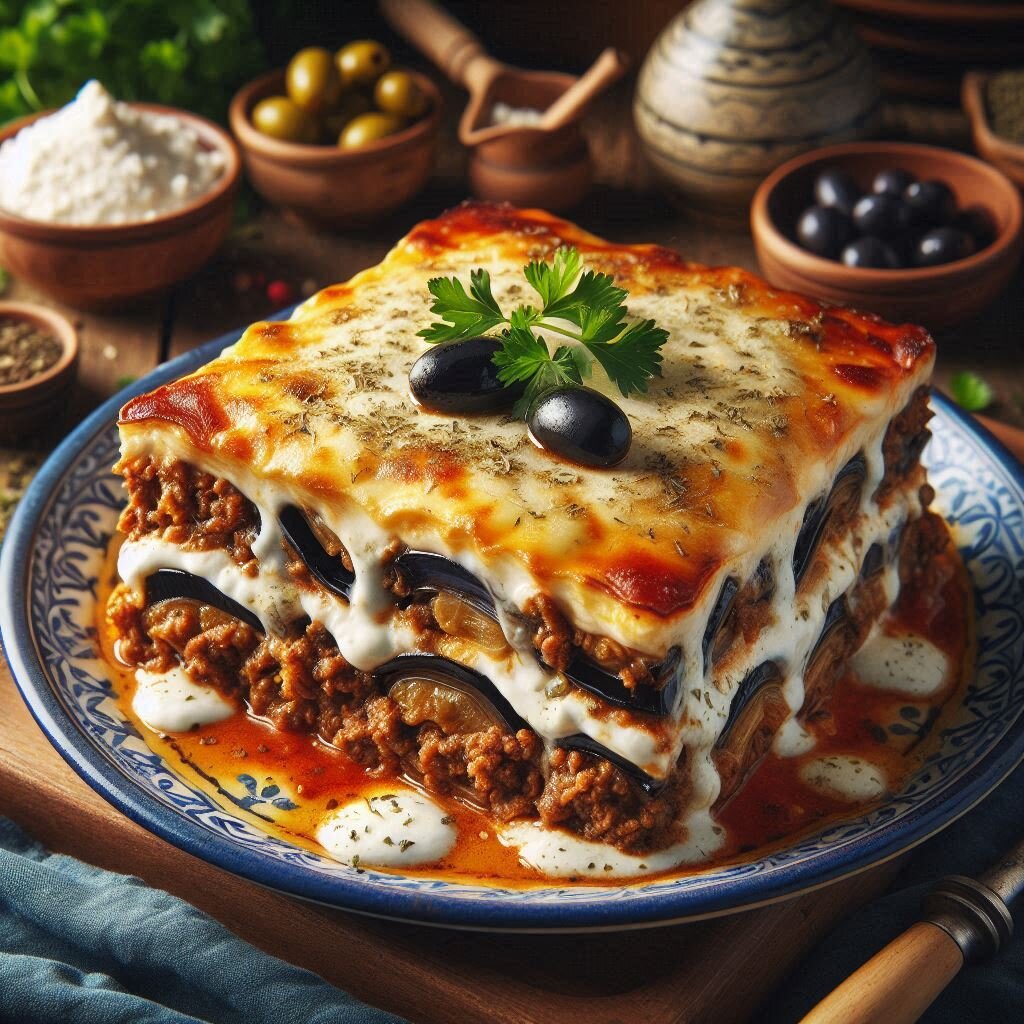Мусака - греческое блюдо из слоистых овощей (обычно баклажаны), фарша, томатного соуса и бешамельного крема, запеченного до золотистой корочки. Ингредиенты: Для бешамельного соуса: Инструкции: Это классический рецепт греческой мусаки, который точно понравится вашим гостям или семье!