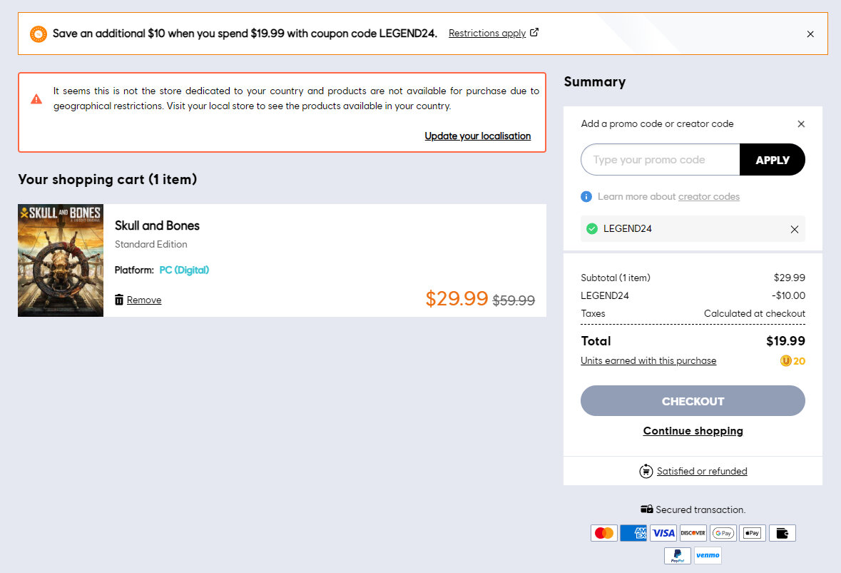 Три месяца назад гордость Ubisoft из категории АААА Skull and Bones дебютировала на ПК, консолях и в облаке, однако после десяти лет разработки желающих поднять пиратский флаг особо не нашлось. А потому в ход пошли скидки. В очередной заход французы не просто до 21 мая опустили ценник версии для персональных компьютеров вдвое, с $59,99 до $29,99 (на консолях на $10 дороже), но и предложили промокод LEGEND24, с которым в Ubisoft Store приобрести приключенческий экшен можно и вовсе за минимальные для него $19,99. Глядишь, коли не жадность компании, то у сервиса сейчас была бы куда более внушительная аудитория. Ждем переход на условно-бесплатную модель? https://www.youtube.com/watch?v=EMhRv6WyDrA