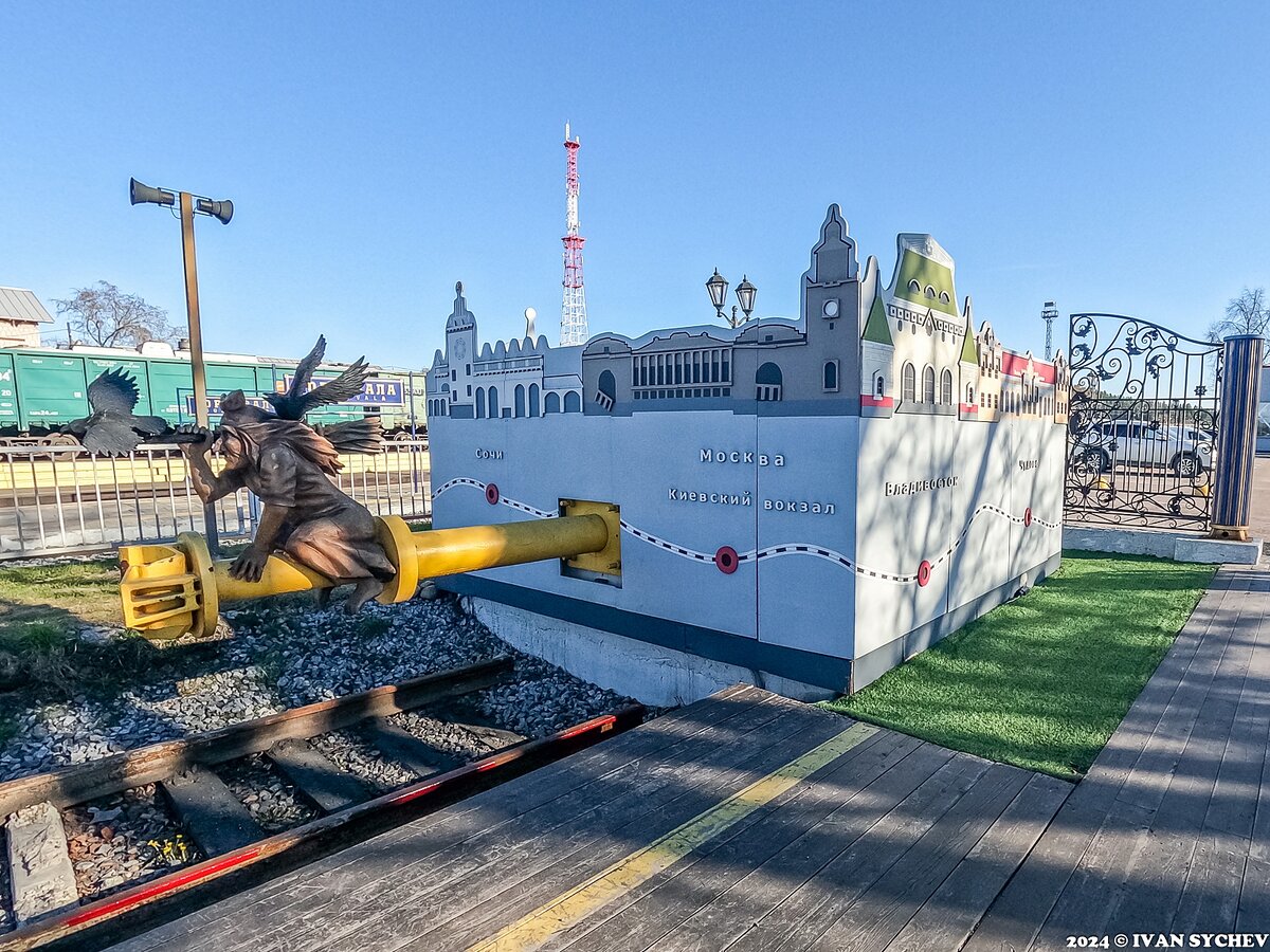 Так получилось, что Парад Победы 9 мая я не смотрел. Потому что в этот день пути-дороги привели меня в Карелию. Великолепная природа, яркий солнечный день, хорошие друзья-попутчики – что еще надо для счастья? Конечно, те, кто давно читают «Записки», понимают – железной дороги! И опять же все сложилось так, что все мы оказались в нужное время в нужном месте: не так, чтобы далеко от станции Сортавала незадолго до прибытия Рускеальского экспресса. Хотели заскочить, поснимать в стиле братьев Люмьер «Прибытие поезда», но вышло еще любопытнее. 1. Во-первых, на железнодорожной станции Сортавала достаточно много внимания уделено ее оформлению. Одна из платформ деревянная «под старину» с фонарями и настоящим семафором в торце. А один из тупиков оформлен вот так: 2. Во-вторых, на станции оказалось просто какое-то зашкаливающее количество паровозов. Например, Су-250-74. Паровозов серии Су вообще мало сохранилось, а тут явно рабочий, потому как украшения говорят, что был он в составе Поезда Деда М