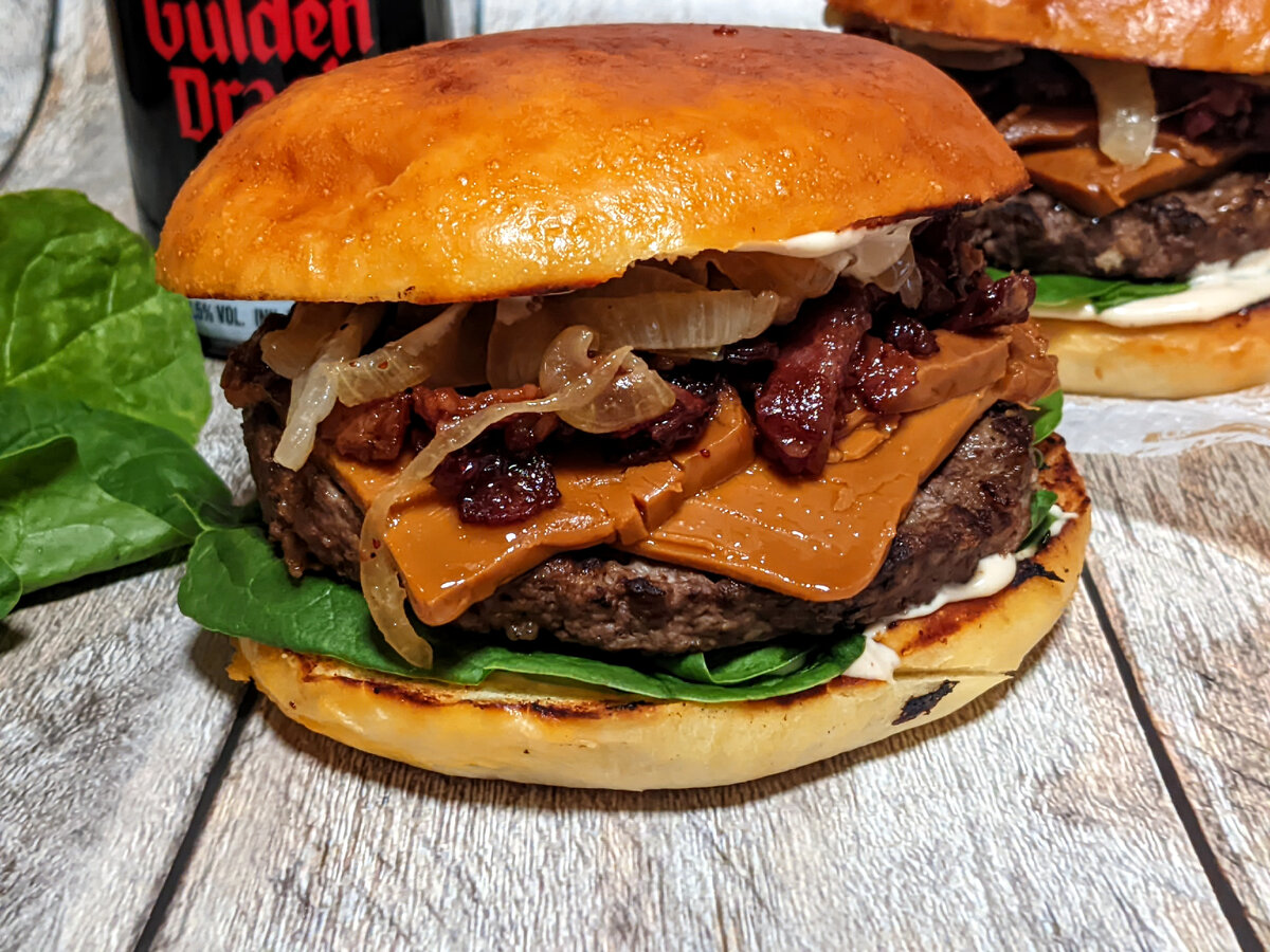 Бургер с характерными ингредиентами для норвежской кухни. Здесь будет невероятно вкусное сочетание сыровяленого бекона со сладким, с легкой кислинкой, брусничным джемом; мягким, чуть сладковатым, с карамельными оттенком коричневым норвежским сыром; нежным соусом, жаренным луком и свежим шпинатом. Будет восхитительно вкусно.