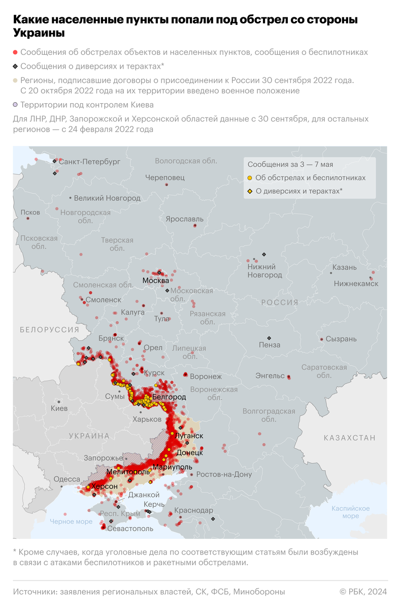 Средствами ПВО также были сбиты три дрона над Брянской областью и два над Липецкой. Еще один беспилотник был перехвачен над Волгоградской областью, отчиталось ведомство Силы ПВО уничтожили две оперативно-тактические ракеты «Точка-У» над Белгородской областью, сообщило Минобороны в телеграм-канале. Белгородский губернатор Вячеслав Гладков в 4:03 сообщал о ракетной опасности в Белгороде и Белгородском районе, в 4:47 тревога была отменена. «В течение прошедшей ночи пресечен ряд попыток киевского режима совершить террористические атаки с применением БПЛА самолетного типа и оперативно-тактических ракет «Точка-У» по объектам на территории Российской Федерации», — говорится в сообщении.