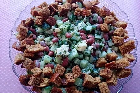 . Пока сухарики сушатся, нарезаем салат.