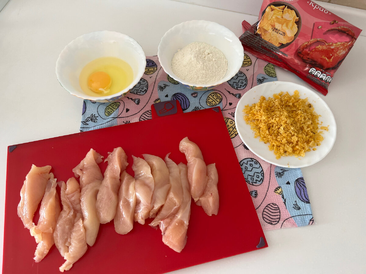 Сделать аппетитные и необычные наггетсы дома очень легко, просто заменив классическую панировку из сухарей на хрустящую корочку из чипсов. Результат получается невероятно вкусным. Можно взять чипсы с любым вкусом, можно смешать сразу несколько вкусов. Для этого 📌Понадобится: Лучше взять куриную грудку или филе бедра Мясо порезать на небольшие , продолговатые кусочки. Чипсы хорошо измельчить ⬇️ 🔸Каждый кусочек куриного филе обваливаем в муке ⬇️ 🔸Затем в яйце ⬇️ 🔸Затем очень хорошо обваливаем в чипсах⬇️ 🔸Куриные наггетсы запекать в духовом шкафу - 20 - 30 минут , при температуре 190 градусов . 🔸Наггетсы получаются сочные и хрустящие. Приятного аппетита ! 📌Спасибо за просмотр! Отдельное спасибо за лайк и подписку ! Готовьте с удовольствием и радуйте своих близких. 🌸Ирина