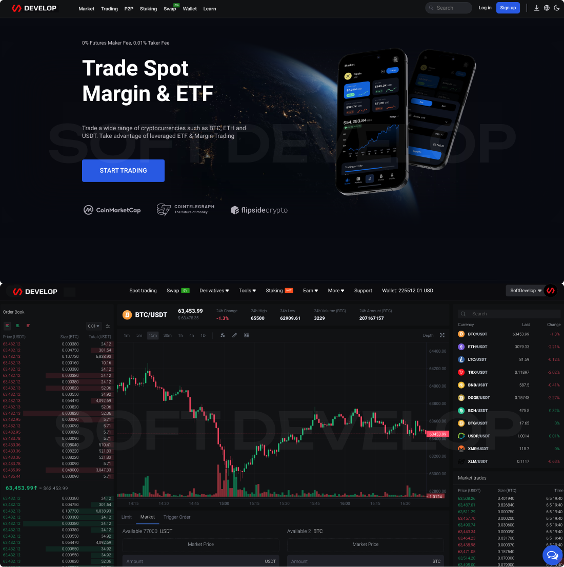 - Многофункциональная админ панель: Удобная админ панель позволяет полностью контролировать работу биржи, включая изменение курсов криптовалют, добавление новых функций и т.д.