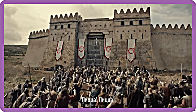 Нет, откуда в средневековом поле взялся современный автомобиль, у меня вопросов нет. Привыкла... (В прошлом ролике он нарисовался рядом с пещерой первобытного человека.) Я даже не удивляюсь, как человек из толпы узнал, что именно в этом автомобиле привезли. (В рекламе, завидев фургон, он взвизгивает: «Сыр!!!»