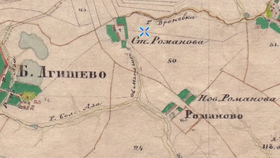 Да в селе ж в Романове церковные пашни дватцать чети в поле, а в дву по тому ж.