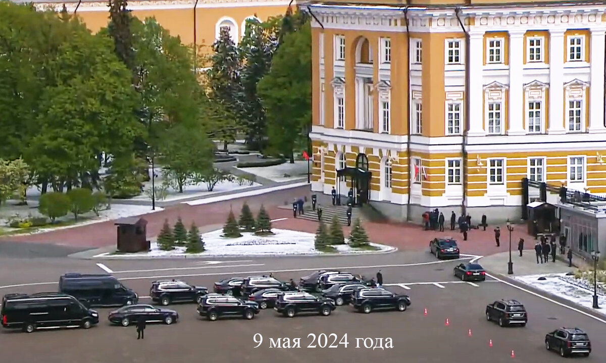 Что произошло 9 мая 2024 года? Вместо того, чтобы просто войти в парадный вход купольной ротонды и сразу попасть в Екатерининский зал, гости вошли в Ленинский подъезд, прошли по длинному узкому коридору бывшего корпуса Совета Министров СССР вдоль Чудовской улицы и попали в сени Екатерининского зала. В сенях они поздоровались с Путиным, сфотографировались на память и проследовали через боковой вход в Екатерининский зал.