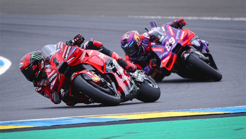 120 000 фанатов Moto GP наблюдали, как преданный чемпион мира долгое время лидировал на Гран-при Франции и в конечном итоге потерпел поражение от своих самых сильных соперников: Баньяя на финише стал третьим лучшим гонщиком «Ducati». Не из-за недостатка самоотдачи чемпион мира финишировал на Гран-при Франции лишь на третьей ступени подиума, а не на вершине. Как это часто бывает, Баньяя взял на себя управление на старте и долгое время поддерживал порядок, проехав 20 кругов без ошибок. Однако итальянцу не удалось скрыться, потому что Хорхе Мартин не сдавался и, наконец, со второй попытки вышел в лидеры в Ле-Мане. Баньяя прокомментировал смену лидерства: «Большое разочарование заключается в том, что на последних четырех-пяти кругах я не смог ничего сделать, чтобы снова атаковать. Все было прямо противоположно тому, как в Хересе, когда ближе к концу мне удалось выжать из этого немного больше. Сегодня мне пришлось наблюдать с очень близкого расстояния, но я не мог ничего сделать на важном э
