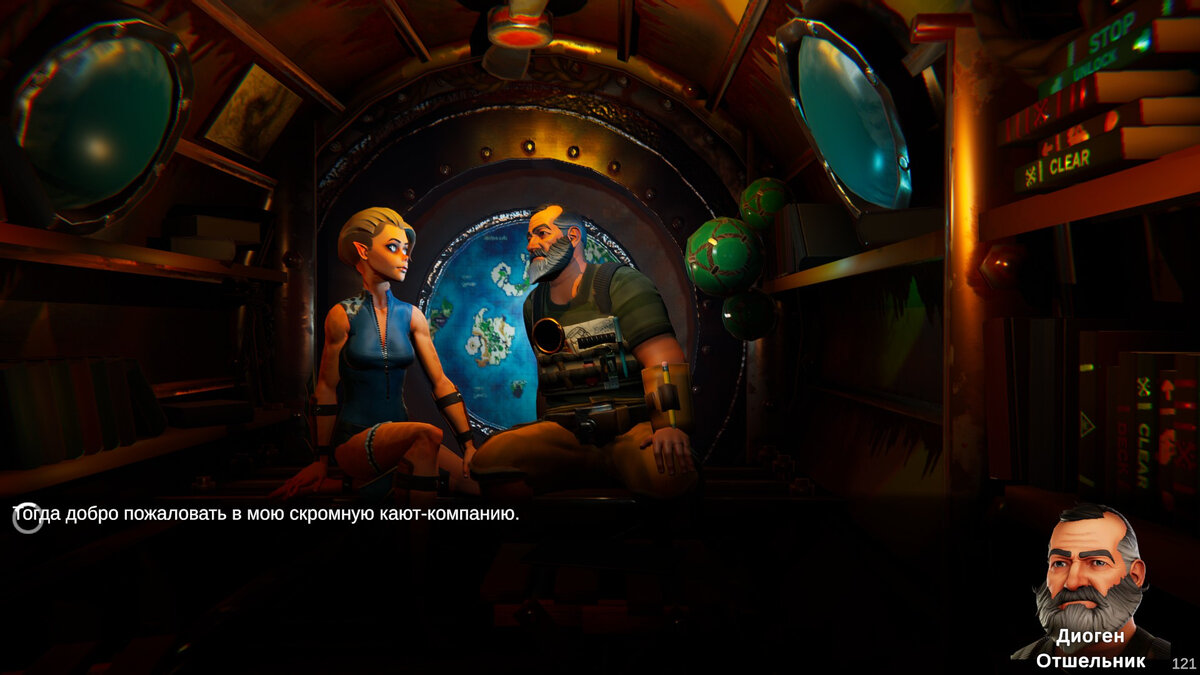 Исследуя мир, вы частенько будете натыкаться на какие-то торчащие из воды руины небоскребов, скалы или обжитые точки, где живут NPC. К этому вопросу дизайнеры подошли творчески — многие базы интересно разглядывать. Тут вам и большой портовый кран, внутри которого местные открыли бар “Богомол” (кран правда похож на это насекомое), и странная статуя, держащая факел в одной руке, на которой живет вполне себе цивилизованная и очень умная обезьяна.