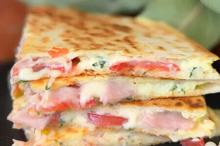 На лепешку выкладываем сыр, далее вливаем яйцо (предварительно яйцо нужно немного взболтать), следом кладем ветчину, помидоры (помидоры можно немного подсолить), далее посыпаем все укропом и еще раз сыром.